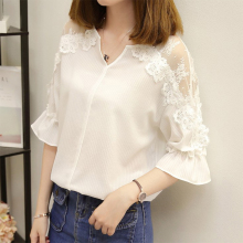 2017夏装新款韩版超仙气质一字肩漏肩喇叭袖上衣宽松短袖雪纺衫女