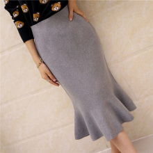 安·彩·茵2016秋冬新款韩版针织包臀中裙高腰半身鱼尾裙荷叶边裙