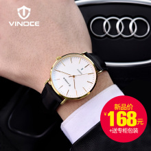 威诺时专柜正品薄款手表男 时尚潮流防水真皮带男表男士石英表