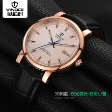 威诺时正品时尚潮流男士手表男真皮带男表休闲男表日历石英表防水