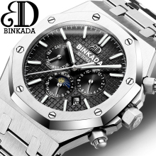 宾卡达皇家橡树大表盘手表男士全自动机械表多功能月相钢带男表