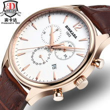 宾卡达手表男士防水真皮腕表男表石英表休闲时尚赛车三眼六针学生