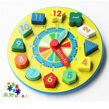 早教儿童木制彩色积木宝宝几何形状认知活动数字DIY时钟周岁玩具