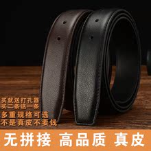 真皮无扣头皮带条纯牛皮带身打孔针扣圆孔皮带条2.4~3.8宽皮带条