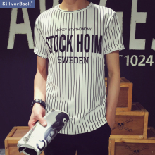 夏季新款韩版潮流青少年数字竖条纹男士短袖T恤男装嘻哈棒球半袖T