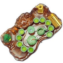 豹霖陶瓷功夫茶具套装 茶盘 实木茶托盘茶海茶台简约竹制家用排水