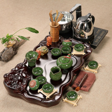陶瓷功夫茶具 整套紫砂茶具套装 冰裂釉茶具双层隔热茶盘配件茶壶