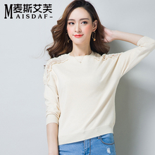 2017春装新款圆领套头绣花针织衫打底衫毛衣女装春秋韩版潮长袖