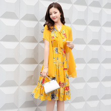 韩版女装夏季新款碎花连衣裙夏雪纺长裙