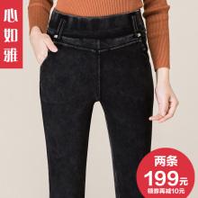 心如雅冬季新款加绒加厚高腰牛仔裤打底裤外穿裤保暖棉裤显瘦女裤