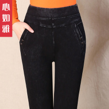 心如雅秋冬季新款高腰加绒加厚仿牛仔打底裤女裤大码弹力外穿棉裤