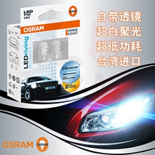 欧司朗LED汽车示宽灯T10带透镜插片式门灯牌照灯白光行车灯泡包邮