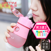 悠家良品太空学生运动健身水壶便携塑料随手杯子磨砂水杯成人吸管