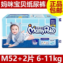 正品包邮妈咪宝贝纸尿裤男M瞬吸干爽M男中号M52+2片尿不湿同比M88