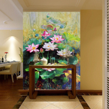臻心3d立体大型壁画墙纸玄关走廊无缝壁纸亭亭玉立无缝布油画荷花