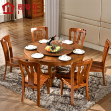 意特尔家具水曲柳大圆桌实木圆餐桌饭桌家用6人小户型餐桌椅组合