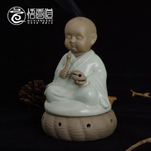 悟香道 汝窑陶瓷小沙弥香炉 小和尚盘香炉沉香檀香塔香熏香炉摆件