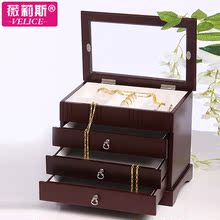 VELICE/薇莉斯首饰盒 欧式公主韩国双层抽屉木质手饰品珠宝收纳盒