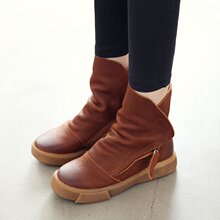 马丁靴女英伦风秋冬真皮侧拉链厚底短靴女复古圆头平底加绒女靴子