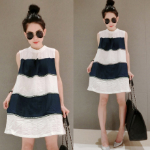 欧洲站2017夏季新款欧货时尚T恤裙女宽松休闲无袖裙子棉麻连衣裙