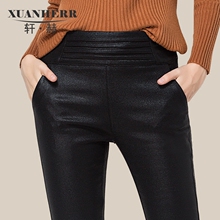 轩赫春秋女装外穿仿皮裤女长裤大码紧身打底小脚裤铅笔裤子薄款