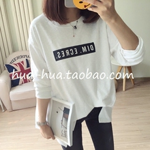 3件包邮韩国订单韩版卡通字母纯棉插肩袖长袖T恤打底衫女款M