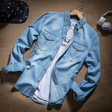秋季休闲牛仔衬衫男长袖休闲韩版牛仔外套薄款牛仔衬衣男士日系潮