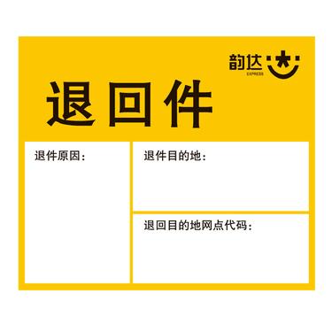 韵达退回件标签 韵达快递改退标识贴纸 快递专用书写纸 不干胶
