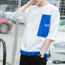 夏季短袖T恤男圆领修身韩版男士七分袖五分半袖学生上衣服男装潮