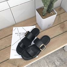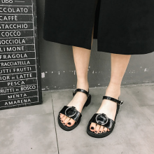 韩国ulzzang 自制款大金属扣一字鱼嘴女罗马沙滩凉鞋夏季平底女鞋