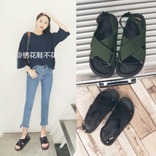 韩国ulzzang 罗马风厚底交叉原宿女沙滩凉鞋鱼嘴夏季平底简约女鞋