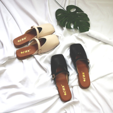 韩国chic奶奶鞋平底休闲一脚蹬女单鞋春夏季凉鞋单品自制款女浅口