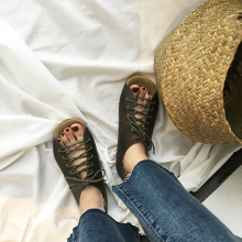 自制款 平底交叉鱼嘴复古英伦风皮带扣女凉鞋小清新简约田园文艺