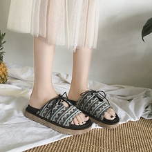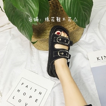绣花鞋不花 原宿日系民族风鱼嘴两穿夏季凉鞋ulzzang厚底松糕拖鞋