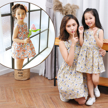 2017夏亲子裙韩版母女装小碎花女童连衣裙全棉纯棉露背儿童裙