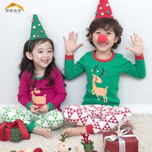 2017春秋韩国童装男女儿童内衣套装幼儿宝宝圣诞款小鹿睡衣家居服