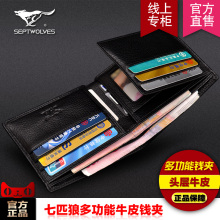 七匹狼钱包男士短款真皮软皮夹横竖款青年学生纯头层牛皮钱夹正品