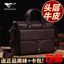 七匹狼男包纯头层牛皮手提包手拎包公文包电脑包商务手提单肩包