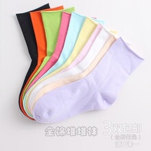 短款堆堆袜薄款韩国松口纯色女袜彩色卷边不勒脚短袜森系瘦腿袜子