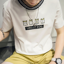 夏季男士纯棉圆领短袖飘带t恤夏装情侣半袖体恤学生上衣服男装潮