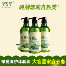 草安堂橄榄精油洗发水护发素沐浴露家庭套装750ml清香型男女柔顺