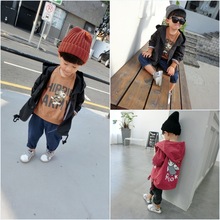 儿童风衣男女童装外套16韩版秋款背后卡通图案连帽风衣宝宝上衣潮