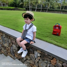 饭小范童装 2017夏季新款 男女童 儿童海军风白色短袖衬衫
