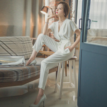 漫天飞扬夏装白色套装时尚女装名媛气质修身优雅韩版连体裤