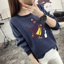 韩版秋冬季学生装宽松圆领套头卡通加绒加厚打底卫衣女外套上衣潮