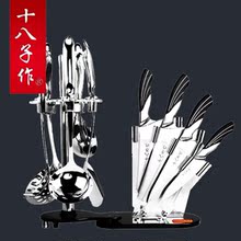 正品防伪十八子作刀具银盈七件套S2504套装阳江全不锈钢菜刀套刀