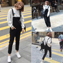 2016秋季女装新款宽松小脚连体牛仔长裤韩版百搭休闲背带裤学生潮