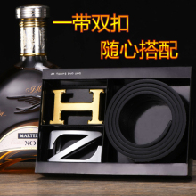 男士真皮腰带平滑扣字母皮带韩版潮休闲青年牛皮裤带保罗爱马仕夫