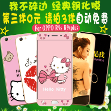 oppor9s钢化玻璃膜r9splus彩膜前后R9S软边卡通防爆全屏手机贴膜