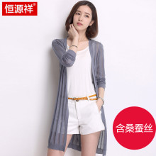 恒源祥中长款开衫女毛衣薄针织衫防晒上衣外搭空调衫夏季冰丝外套